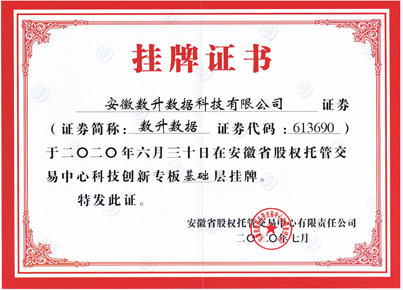 安徽省科创板挂牌证书